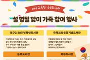 (포탈뉴스통신) 대구시교육청 공공도서관은 설 명절을 맞아 도서관별 특색을 살린 가족 참여형 독서·문화 행사를 다채롭게 운영한다. 각 도서관은 그림책과 전래놀이 체험, 전시, 북큐레이션, 독서퀴즈 등을 통해 가족들이 명절의 의미와 전통문화를 책과 함께 즐길 수 있도록 마련했다. 대구2·28기념학생도서관은 ▲그림책 체험과 전통 놀이를 결합한 ‘그림책으로 만나는 우리 가족 즐거운 설날’, ▲조부모님께 감사 편지를 쓰는 ‘감사 편지 쓱쓱 복주머니 냠냠’과 전통 풍습‘우리 가족 운수 대통 윷점 윷놀이’를 체험하고, ▲설날 풍경을 그린 그림책 '설날'의 원화 전시회를 통해 가족의 소중함과 명절의 정겨운 풍경을 전한다. 국채보상운동기념도서관은 ▲가족과 함께 전통매듭의 의미와 아름다움을 배울 수 있는 ‘전통매듭 책갈피 및 키링 만들기’ 가족체험 행사와 ▲어린이 이용자를 위한 ‘새해맞이 펠트 복주머니 만들기’체험이 운영된다. 명절을 주제로 한 ▲엄마와 그림책 읽기, 북큐레이션과 독서퀴즈 등도 마련된다. 동부도서관은 ▲도서 5권 이상 대출 후 가족과 함께 윷놀이 세트를 만들고 대결을 펼치는 ‘모’아니