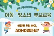(포탈뉴스통신) 서울 도봉구가 오는 3월 26일 오후 7시 30분에 아동·청소년기 대표 정신질환인 주의력결핍 과잉행동장애(ADHD)에 대한 부모 교육을 실시한다. 교육은 온라인(ZOOM)으로 진행되며, ▲주의력 결핍 및 과잉 행동장애의 증상 ▲평가 과정과 조기 발견 ▲증상 관리 및 치료 방법 ▲주의력 결핍 및 과잉 행동 장애 자녀 양육을 위한 노하우 등에 대해 다룬다. 강의는 신혜경 정신건강의학과 전문의가 맡는다. 교육 신청은 3월 26일 오후 7시 30분까지 도봉구 정신건강복지센터 누리집에서 가능하다. 자세한 내용은 지역보건과 정신건강복지센터로 문의하면 된다. [뉴스출처 : 서울특별시 도봉구]