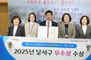 (포탈뉴스통신) 대구 달서구는 대구시가 주관한 ‘2025년 구·군 성별영향평가’에서 우수상을 수상했다고 19일 밝혔다. 이번 수상으로 달서구는 6년 연속 성별영향평가 우수기관으로 선정되며, 성평등 정책 추진을 위한 지속적인 노력과 성과를 인정받았다. 달서구는 조례 제·개정 과정에서 성별영향평가를 실시하고 이를 적극 반영해 왔으며, 정책사업에 대한 컨설팅과 점검을 강화해 2025년 한 해 동안 조례 35건과 사업 18건에서 개선 성과를 달성했다. 또한 ‘일상 속 양성평등 언어 사용하기’ 캠페인 등 시민들이 체감할 수 있는 생활밀착형 정책을 꾸준히 추진하며 성평등 문화 확산에도 힘쓰고 있다. 이태훈 달서구청장은 “달서구가 6년 연속 성별영향평가 우수기관으로 선정된 것은 여성친화도시 달서구의 성과이자 쾌거”라며 “앞으로도 주요 정책과 사업이 성별에 미치는 영향을 면밀히 분석하고 개선해 실질적인 성평등을 실현해 나가겠다”고 말했다. [뉴스출처 : 대구시달서구청]