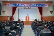 (포탈뉴스통신) 사천시는 2일 오전 10시 시청 대강당에서 박동식 사천시장을 비롯해 김제홍 부시장, 국·소장 및 전 직원이 참석한 가운데 2026년 병오년 시무식을 개최했다. 이날 시무식은 시정 홍보영상 시청, 유공 공무원 표창 수여, 신년사 순으로 진행됐으며, 공식 행사에 앞서 2025년 혁신주니어보드 최우수팀의 이지연 주무관이 ‘MZ의 시선에서, 소소하고 확실한 혁신’을 주제로 조직문화와 일하는 방식 개선에 대한 아이디어를 제시해 시무식 분위기에 변화를 더했다. 특히, ▲글로벌 우주항공복합도시 도약 ▲머무는 해양·문화 관광도시 완성 ▲민생경제 회복 및 지역상권 보호 ▲교통·정주환경 개선과 시민 안전 강화 ▲아이부터 어르신까지 행복한 복지도시 조성 등 올해 시정 운영의 5대 중점 과제를 제시했다. 유공 공무원 표창 수여식에서는 국무총리 표창(박민경, 박현아, 배현기, 김미경)을 비롯해 행정안전부장관 표창(강영욱,하동훈), 보건복지부장관 표창(유재희) 경상남도지사 표창(조인영, 이현진, 강선미, 박예슬, 최재형, 김수지) 등 총 13명의 직원이 성실한 공직 수행의 공로를 인정받아 수상의 영예를 안았다. &nbs