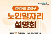 (포탈뉴스통신) # “양천구민의 발이 되는 공공자전거 따릉이를 제 손으로 관리한다는 게 자부심입니다. 얼마 전 한 청년이 ‘덕분에 안전하게 출퇴근한다’며 인사를 해줬을 때 정말 행복했어요. 노인일자리에 참여하며 ‘일하는 보람’을 다시 느낍니다”(양천구 노인일자리 참여자 송○○, 천○○ 어르신) 양천구는 어르신들에게 다양한 일자리 정보를 제공하고 활발한 사회참여를 돕기 위해 ‘2026 노인일자리사업 설명회’를 오는 12월 2일 오후 해누리타운(2층)에서 개최한다고 9일 밝혔다. 이번 설명회는 양천시니어클럽이 주관하고 관내 노인일자리사업 수행기관 10개소가 공동으로 참여한다. 지역 어르신 1,000여 명을 대상으로, 노인일자리에 관심 있는 60세 이상 구민 누구나 참여할 수 있다. 행사는 ▲1부 ‘2025년 성과공유회’와 ▲2부 ‘2026년 노인일자리사업 설명회’로 구성된다. 1부에서는 지난 한 해 사업 성과를 공유하고, 우수 참여자 표창이 진행될 예정이다. 이날 표창 대상자에는 시니어승강기안전단으로 지하철 역사 내 근무하면서 승강장 틈 사이로 휴대전화를 분실한 시민에게 도움을 준 오태길 님(76세) 등 16명이