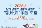 (포탈뉴스통신) 남해군은 2026년 지역 청소년 정책을 함께 만들어 갈 청소년참여위원회 신규 위원을 모집한다고 밝혔다. 청소년참여위원회 ‘청바지’(청소년을 위한 청소년이 바라는 청소년들에 의한 지역사회)는 청소년 관련 정책과 사업을 제안하고, 사업 추진 과정에 주체적으로 참여하는 청소년 참여 기구다. 청소년의 권익 증진과 실질적인 정책 반영을 위해 운영 되며, 학교 생활, 진로, 문화활동, 복지, 안전 등 청소년의 삶과 밀접한 다양한 분야를 다룬다. 위원으로 선발되면 정기회의와 분과활동에 참여하여, 정책 제안서 작성, 간담회 참석, 지역 행사 및 캠페인 활동 등을 수행하게 된다. 특히 청소년의 시각에서 지역 현안을 바라보고 개선방안을 제시하는 과정은 참여 청소년들에게 뜻깊은 경험이 될 것으로 기대된다. 모집 대상은 지역 내 거주하거나 재학 중인 청소년으로, 평소 지역사회의 정책 활동에 관심이 있거나 다양한 경험을 희망하는 청소년이면 누구나 지원이 가능하며, 총 20명을 선발할 예정이다. 청소년은 공개모집과 학교와 기관 추천을 병행해 선발하며, 활동기간은 4월부터 12월까지로