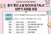 (포탈뉴스통신) 대구 중구청년지원센터 잇플은 오는 4일부터 6월 20일까지 3개월간 ‘중구 청년 소셜 BOOK&TALK(북앤톡) 프로그램’을 운영한다. 이번 프로그램은 매주 토요일 오후 2시부터 4시까지 진행되며, 청년들이 책을 매개로 서로의 생각과 경험을 나누고 다양한 관점을 공유할 수 있도록 마련됐다. 상반기 북앤톡은 총 10회차로 운영되며, 회차별 도서는 ▲‘행복의 기원’ ▲‘왜 나는 너를 사랑하는가’ ▲‘미움받을 용기’ ▲‘MBTI의 의미’ ▲‘여덟 단어’ ▲‘편안함의 습격’ ▲‘멋진 신세계’ ▲‘돈의 속성’ ▲‘평소의 발견’ ▲‘이어령의 마지막 수업’ 등으로 구성된다. 참여자는 사전에 해당 도서를 읽고 참여하면 보다 풍성하게 의견을 나눌 수 있다. 모집 대상은 19세부터 39세까지의 청년으로, 중구에 거주하거나 주요 활동지가 중구인 청년이면 누구나 신청할 수 있다. 프로그램은 회차별 5명 이내 소규모로 운영되며, 모든 회차를 반드시 참여할 필요 없이 원하는 회차를 선택해 신청할 수 있다. 참여 신청은 중구청년지원센터 공식 SNS(네이버 블로그·인스타그램) 안내를 통해 접수하면