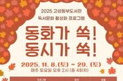 (포탈뉴스통신) 고성군은 지역주민들의 독서문화 확산과 책을 통한 소통 활성화를 위해 ‘2025년 동부도서관 독서문화 활성화 프로그램’을 오는 11월 8일부터 12월 13일까지 매주 토요일, 총 6회에 걸쳐 운영한다고 밝혔다. 이번 프로그램은 어린이와 성인을 대상으로, 맞춤형으로 기획되어, 책을 매개로 창의적 사고와 정서적 위로를 함께 나누는 자리로 마련된다. 어린이 프로그램 ‘동화가 쏙!, 동시가 쑥!’은 동화 작가와의 만남, 동화 낭독, 창작 시 체험, 시 그림 머그컵 만들기 등 다양한 체험 활동을 통해 초등학생들이 상상력과 표현력을 키울 수 있도록 지원한다. 각 회차는 조선시대 비차로 진주성을 탈출한 이야기, 농부 할머니와 멧돼지의 대결 등 흥미로운 주제로 구성되며, 시 쓰기와 자기 마음 돌보기 등 정서 지원을 병행한다. 성인 대상 ‘나를 위로해 주는 그림책’ 프로그램은 그림책을 활용해 감정 치유와 자기 성찰의 기회를 제공할 예정이다. 성인 누구나 참여할 수 있으며, 총 2회 운영된다. 고성군 동부도서관 관계자는 “책을 통해 주민들이 서로 소통하고 공감할 수 있는 소중한