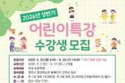 (포탈뉴스통신) 영천시 평생학습관(관장 정경자)은 관내 초등학생을 대상으로 ‘2026년 상반기 어린이특강’ 수강생을 20일부터 선착순으로 모집한다. 이번 특강은 아이들이 체험활동을 통해 자연스럽게 배우고 성장할 수 있도록, 신체 활동부터 예술·탐구 활동까지 총 11개의 다양한 프로그램으로 마련됐다. 오는 5월 2일부터 6월 27일까지 2개월간 운영되며, 수강 신청은 평생학습관 누리집에서 가능하다. 수강료는 주 1회 과목 1만원, 주 2회 과목 2만원으로 재료비는 별도다. 평생학습관 관계자는 “아이들이 특강을 통해 다양한 경험을 해보며 세상에 대한 호기심과 자신감을 키워나가길 바란다”며, “앞으로도 아이들의 눈높이에 맞는 다양한 프로그램을 지속적으로 마련해 나가겠다”고 전했다. 한편, 어린이특강에 대한 자세한 사항은 영천시 평생학습관 누리집을 참고하거나, 평생학습관 교육운영팀으로 문의하면 안내받을 수 있다. [뉴스출처 : 경상북도 영천시]