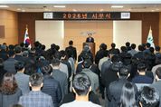(포탈뉴스통신) 경주시는 2일 오전 2026년 시무식과 신년인사회를 잇따라 열고 새해 시정 운영의 출발을 알렸다. 이날 오전 청사 내 대회의실에서 열린 신년인사회에는 주낙영 시장과 최혁준 신임부시장을 비롯한 간부공무원 및 시의회와 공무원 노조 관계자 등이 참석해 새해 인사를 나누며 시정에 대한 공감대를 다졌다. 행사는 전체 인사와 새해 덕담, 간부공무원 인사 순으로 간소하게 진행됐다. 이어 청사 내 알천홀에서는 2026년 시무식이 열렸다. 시무식에는 본청 직원과 직속기관·사업소 및 읍면동장 등 공무원들이 참석했으며, 국민의례와 시정 홍보 영상 상영, 신년사를 통해 새해 시정 방향을 공유하는 자리로 마련됐다. 이날 일정에 앞서 최혁준 신임 부시장 임명장 수여식이 진행돼, 새해 시정 운영을 이끌 핵심 간부의 공식 취임을 알렸다. 주낙영 경주시장은 “이번 신년 행사를 통해 전 직원이 한자리에 모여 새해 각오를 다지고, 흔들림 없는 시정 운영과 현장 중심 행정을 통해 시민이 체감하는 변화를 만들어 나가겠다는 뜻을 공유했다”고 말했다. [뉴스출처 : 경상북도 경주시]