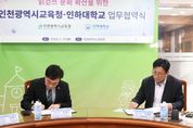 (포탈뉴스통신) 인천광역시교육청은 19일 인하대학교와 읽걷쓰 문화 확산 및 교육·연구 분야 교류 활성화를 위한 업무협약을 체결했다. 이번 협약은 읽걷쓰 교육에 대한 정보와 자원을 공유해 양 기관의 성장과 발전을 도모하고, 학술·교육 교류를 통하여 지역 기반 교육 문화 생태계 조성을 목표로 한다. 협약 내용은 ‘교육·연구 분야 교류 활성화를 통한 다양한 프로그램 발굴 및 공동 운영’, ‘기관별 운영 프로그램 연계 협력’, ‘지역 문제 해결 및 사회공헌 프로그램 공동 개발·운영’ 등이다. 이번 협약으로 인천시교육청과 인하대학교는 ‘읽걷쓰를 통한 일상 속 배움의 실현’이라는 교육 가치를 구체화했으며, 시민 참여형 읽걷쓰 문화 확산을 위해 기관 간 프로그램 공유와 운영을 펼치게 된다. 인천시교육청 관계자는 “이번 협약은 학교 교육과 지역 대학이 협력하여 인천의 교육 문화 수준을 한층 높이는 계기가 될 것”이라며 “읽걷쓰 문화가 시민의 일상 속에서 자연스럽게 확산될 수 있도록 다양한 프로그램을 추진하겠다”고 말했다. [뉴스출처 : 인천시교육청]