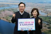 (포탈뉴스통신) 전라남도 나주시는 지난 29일 ㈜일성기업 이순옥 대표(오른쪽)가 고향사랑기부제에 500만 원을 기탁했다고 밝혔다. 이순옥 대표는 고향사랑기부제가 시행된 2023년부터 3년 동안 매년 500만 원씩 총 1500만 원을 기부하며 지속적인 사랑 나눔을 실천하고 있다. ㈜일성기업은 나주시 반남면에서 옹벽 블록과 가로수 보호판 등을 생산하는 기업으로 무더운 여름철에는 삼계닭을 기부하는 등 지역 어르신들의 건강을 돌보기 위한 나눔 문화 확산에도 앞장서 왔다. 이순옥 대표는 “꾸준한 나눔을 통해 지역사회와 상생하며 성장하는 기업으로 자리매김하고 싶다”며 “기부금이 지역 발전에 소중히 쓰이기를 바란다”고 밝혔다. 윤병태 나주시장은 “3년 연속 고향사랑기부제에 동참해 나눔의 뜻을 실천하는 이순옥 대표께 깊이 감사드린다”며 “기탁해 주신 기부금은 시민 복리 증진과 나주의 발전을 위해 적극 활용하겠다”고 말했다. 한편 고향사랑기부제는 개인이 자신의 주소지를 제외한 지방자치단체에 기부할 수 있는 제도로 올해부터 개인별 연간 기부 한도가 2천만 원으로 확대됐다. [뉴스출처 : 전라남도나주시