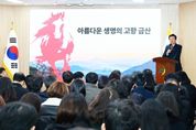 (포탈뉴스통신) 박범인 금산군수는 2일 금산군청에서 열린 시무식에서 “2026년 붉은 말의 해 금산에 대한 자부심을 가지고 군정의 밝은 미래를 열어가자”고 당부했다. 그러면서 아름다운 금산, 건강한 금산, 신명나는 금산, 안전한 금산, 순박한 금산에 대해 소개하며 지역에 대한 자랑스러운 마음을 갖자고 했다. 이와 관련해 박 군수는 아름다운 금산군의 비단산과 비단강에 대한 여러 언급을 인용했다. 이어, 최고의 건강선물 인삼과 장수의 상징이자 천연기념물인 은행나무에 관해 소개하며 건강한 금산을 강조하고 금산농악과 금산다락원을 통해 신명나는 금산에 관해 이야기했다. 또한, 금산은 안전성이 필요한 위성통신 기지국이 들어선 만큼 안전한 곳이라는 점을 언급하고 과거 범죄없는 마을 선정사례를 들어 순박한 금산을 강조했다. 금산군은 지난 2003년도 검찰청이 선정한 범죄없는마을에 전국 지자체 중 가장 많은 25개 마을이 선정됐다. 박 군수는 “이런 훌륭한 발전동력을 가진 금산의 발전을 위해 힘을 내야 한다”며 “세계를 향한 과감한 도전으로 지역의 희망과 행복을 키우자”고 전했다. [뉴