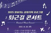 (포탈뉴스통신) (재)인천중구문화재단(이사장 김정헌)은 오는 28일 저녁 퇴근길 시민들을 위한 특별한 문화 행사 ‘2025 영종 퇴근길 콘서트’를 개최한다. 이번 ‘영종 퇴근길 콘서트’는 구민들의 일상 속 문화예술 향유 기회를 확대하고, 다양한 장르의 문화 기획 프로그램을 통해 주민과 관광객이 함께하는 열린 문화공간을 조성하기 위한 취지로 마련됐다. 퇴근 시간대에 맞춰 진행될 이번 공연은 주민과 직장인들이 편하게 즐길 수 있는 ‘일상 속 문화예술 프로그램’으로 기획된 것이 특징이다. 먼저 오후 5시부터 5시 40분까지 인천 중구 제2청사(운남서로 100)에서 콘서트를 진행한 데 이어, 저녁 6시 30분부터 7시까지 공항철도 운서역 2번 출구 앞 광장에서 공연이 열릴 예정이다. 무료로 진행되는 이번 공연에서는 지역 예술인들이 참여하는 다채로운 음악 무대가 펼쳐진다. 이를 통해 퇴근길의 바쁜 일상에서 잠시 쉬어갈 수 있는 따뜻한 감동과 여유를 선사할 예정이다. 재단은 앞으로도 프로그램 콘텐츠 다양화와 예술인 네트워크 확대를 통해 지역 문화예술의 지속적 성장과 구민 문화 향유 증진에 힘쓸 계