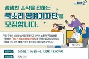 (포탈뉴스통신) 광주광역시 북구는 구정 소식지인 ‘북소리’를 통해 지역의 생생한 소식을 전달하는 명예기자단을 모집한다고 14일 밝혔다. ‘북소리 명예기자단’은 구정 홍보에 주민들의 참여를 활성화하기 위해 지난 2009년 발족한 이후 현재까지 운영되고 있다. 이번 모집에서는 제9기 명예기자단 40여 명을 선발할 계획이다. 지역사회에 관심이 많고 기사 작성 및 인터넷 활용 능력을 갖춘 북구 주민이라면 누구나 신청할 수 있다. 모집 기간은 다음 달 12일까지이며 신청 방법은 지원서와 자유 주제 기사 1개를 작성해 이메일로 제출하면 된다. 지원자들이 제출한 서류를 바탕으로 맞춤법, 문장 표현력, 구정 이해도 및 관심도 등의 기준에 따라 심사한 뒤 2월 말 최종 합격자를 확정될 계획이다. 선발된 명예기자는 오는 3월부터 2년간 활동하며 주민들의 시선에서 지역 소식과 미담 사례 등을 취재해 ‘북소리’에 연 1회 이상 기사를 게재한다. 북구는 명예기자단의 원활한 활동을 위해 편집회의, 워크숍, 교육 등을 지원하고 원고가 채택될 경우 소정의 원고료를 지급할 계획이다. &nbs