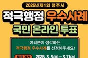 (포탈뉴스통신) 청주시는 ‘2026년 제1회 적극행정 우수공무원 선발’ 공모 심사를 위한 시민 투표를 3월 11일까지 진행한다고 7일 밝혔다. 적극행정 우수공무원 선발은 불합리한 제도 개선 등 적극행정을 추진해 시민이 체감할 수 있는 성과를 창출한 공무원을 선발하는 제도로, 시민 추천과 부서 추천을 통해 우수사례를 접수한다. 이번 심사 대상 우수사례는 총 30건으로 역대 최다 접수를 기록했다. 현장에서 시민 불편을 해소하기 위해 공직자들이 직접 발로 뛴 결과물로, 민선8기 청주시 행정 철학인 ‘규정 뒤에 숨지 말고 적극적으로 일하라’가 공직사회 전반에 깊숙이 반영됐음을 보여준다. 심사 과정은 투명하고 공정하게 진행된다. 시민투표는 온라인 소통 플랫폼 ‘소통24’(정책참여→국민심사→청주시 2026년 제1회 적극행정 우수공무원 국민 온라인투표)에서 진행된다. 이후 시는 실무심사위원회와 적극행정위원회를 거쳐 최우수 1명, 우수 4명, 장려 7명 선발할 계획이다. 선발된 공무원에게는 특별승진, 특별승급, 인사상 가점 등 인센티브를 제공해 공직사회에 적극행정 문화를 확산할 방침이다. 임은수 시