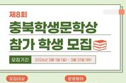 (포탈뉴스통신) 충청북도교육청 직속기관 교육도서관은 작가를 꿈꾸는 청소년들의 문학 창작 활동을 지원하기 위해 '제8회 충북학생문학상' 참가자를 모집한다고 밝혔다. 충북 도내 학생들의 창작 역량을 키우고 문학적 소질을 발굴하기 위해 마련된 이번 문학상은 초‧중‧고등학생과 학교 밖 청소년을 대상으로 운영된다. 참가 분야는 시, 소설, 수필, 동화, 생활글 등 총 5개 분야이다. 문학상 참가 학생들은 4월부터 10월까지 충북 지역 등단 작가가 진행하는 온‧오프라인 창작 지도 과정에 참여하게 된다. 학생들은 매월 작품을 제출하고 지도작가의 온라인 첨삭 지도와 대면 지도를 통해 글쓰기 역량을 키우며, 지도작가와의 만남과 특강 등 다양한 프로그램에도 참여하게 된다. 지도 과정에 5회 이상 참여한 학생에게는 '충북학생문학상' 공모전 참가 자격이 주어지며, 공모전은 10월 한 달간 진행된다. 이후 11월 심사를 거쳐 장르별 금‧은‧동상 수상작을 선정하고, 금상 수상작 가운데 대상이 결정된다. 최종 수상작은 12월 교육도서관에서 열리는 시상식에서 발표되며, 수상 작품은 작품집으
