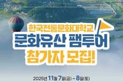 (포탈뉴스통신) 국가유산청 한국전통문화대학교는 11월 7일부터 8일까지 대학 캠퍼스(충남 부여군)와 부여군 일대에서 전국 고등학생과 학부모를 대상으로 전통문화와 문화유산의 가치를 직접 체험할 수 있는 '2025 한국전통문화대학교 문화유산 팸투어'를 운영한다. 이번 행사는 전통문화 교육의 산실인 한국전통문화대학교 곳곳을 소개하고, 전통문화와 문화유산에 대한 이해와 공감대를 형성하기 위해 마련됐다. 첫날인 11월 7일에는 대학입학 설명회와 함께 캠퍼스 탐방 등이 진행되며, 둘째 날인 8일에는 부여의 자연경관을 조망할 수 있는 열기구 체험, 천연기념물 '부여 가림성 느티나무'(성흥산 사랑나무), 사적 '부여 궁남지' 등 부여군 일대의 국가유산 탐방, 학예사와 함께 하는 국립부여박물관 전시 관람 등의 프로그램이 운영된다. 참가 대상은 전국 고등학교 1·2학년 학생과 학부모 총 10팀(20명)이며, 신청은 11월 2일까지 한국전통문화대학교 누리집 또는 공식 인스타그램의 참가자 모집 신청 주소를 통해 가능하다. 진로를 탐색하는 학생들이 학부모와 함께 한국전통문화대학교의 미래 비전과 학교생활을 미리 경험해보며,