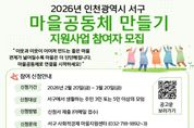 (포탈뉴스통신) 인천 서구는 주민 스스로 지역 문제를 해결하고 마을공동체의 성장을 도모하는 ‘2026년 서구 마을공동체 만들기 지원사업’ 참여 공동체와 마을지원활동가를 모집한다. 올해로 8년째 운영되는 이 사업은 주민 간 협력을 바탕으로 마을공동체가 지속적으로 성장할 수 있도록 지원하는 데 목적을 두고 있다. 지원유형은 일반형과 기획형으로 구분하며 ▲일반형은 초기형(최대 100만 원)과 성장발전형(최대 300만 원)으로 총 40개 공동체 ▲기획형은 돌봄, 협업, 네트워크, 공간 등 특정 주제 6개 유형으로 유형별 최대 500만 원에서 1,500만 원까지 총 14개 공동체를 선발하며, 인천 서구 지역에 생활하는 주민 3인 이상 모임이면 누구나 신청할 수 있고 신청 기간은 2026년 2월 20일(금)부터 3월 20일(금)까지다. 서구사회적경제마을지원센터는 주민들의 이해를 돕기 위해 사전컨설팅을 운영하여, 다양한 공동체가 참여하는 내실 있는 성과를 기대하고 있다. 신청 자격 등 자세한 사항은 인천 서구청 홈페이지 고시공고 및 센터 홈페이지에서 확인할 수 있고, 기타 문의는 서구사회적경제마을지원센터로 연락하면 된다.