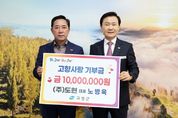 (포탈뉴스통신) 고령군은 11월 4일 ‘고향사랑 기부제’에 고령군 지역 최고액(1,000만원) 기부자가 나왔다고 밝혔다. ㈜도현 노병욱 대표는 고향사랑기부금으로 1,000만원 통 큰 기부와 함께 300만원 상당의 답례품을 활용해 백미 100포도 다산면 경로당에 기부했다. ㈜도현은 금속 표면 처리 및 관련 기술 전문으로, 꾸준한 기술 개발과 품질 관리를 통해 우수 중견기업으로 자리매김하고 있다. 뿐만아니라 고향사랑기부제를 통한 기부활동 등 지역사회를 위한 공헌 활동에도 적극적으로 참여해 오고 있다. 노병욱 대표는 “지역 균형발전과 지역경제 활성화에 기여할 수 있는 고향사랑기부제의 취지에 깊이 공감하게 되어 기부에 참여하게 됐다”며, “이번 기부가 고령 군민들게 작은 보탬이 되길 바란다”고 소감을 전했다. 고령군(군수 이남철)은 “소중한 기부금과 함께 답례품을 함께 재기부하여 주신 것에 깊은 감사를 전한다”며 “이번 기부를 통해 기부 문화 확산에 긍정적 영향을 줄 것으로 기대하고, 고령군의 지역사회 발전에 더욱 힘쓰겠다”라고 밝혔다. [뉴스출처 : 경상북도고령군]
