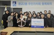 (포탈뉴스통신) 수원시 영통구 광교2동은 지난 5일, 광교2동 주민자치회가 이웃돕기 성금 100만원을 광교2동 행정복지센터에 전달했다고 밝혔다. 광교2동 주민자치회는 평소 이웃돕기 활동을 비롯해 지역사회 나눔 문화 확산과 주민 복지 증진을 위한 다양한 활동을 지속적으로 추진해 오고 있으며 이번 성금은 설 명절을 맞아 어려운 이웃이 소외되지 않도록 주민자치회 회원들의 자발적인 참여로 마련됐다. 김병직 광교2동 주민자치회장은 “설 명절을 맞아 주변의 어려운 이웃을 위해 뜻을 모아준 주민자치회원들께 감사드린다”며 “앞으로도 지역사회의 어려운 이웃을 위한 나눔 활동을 꾸준히 이어가겠다”고 밝혔다. 이날 전달된 성금은 광교2동 행정복지센터를 통해 관내 취약계층 및 위기가구 지원에 사용될 예정이다. [뉴스출처 : 경기도 수원시]