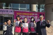 (포탈뉴스통신) 전라남도의회 박형대 의원(진보당·장흥1)은 11월 5일 전라남도교육청 앞을 찾아 학교비정규직 단체교섭 조속 타결을 요구하며 13일째 노숙 단식농성을 이어가고 있는 노동조합 간부들을 위로했다. 전남학교비정규직연대회의와 전라남도교육청은 2024년 3월 본교섭을 시작으로 2년째 121차에 이르는 단체교섭을 진행했으나, 여전히 합의점을 찾지 못한 채 난항을 겪고 있다. 노동조합은 단체교섭을 통해 정규직과 비정규직 간 복무·복지 차별 해소를 요구하고 있으나, 도교육청은 예산 등의 이유로 대부분 수용이 어렵다는 입장을 고수하고 있다. 주요 쟁점은 ▲공무원 65일에 비해 공무직은 15일로 제한된 장기재직휴가, ▲공무원 최대 165만 원에 비해 공무직은 65만원 수준인 맞춤형복지비, ▲유급병가일수 60일 대 30일의 격차, ▲예산 소요가 없음에도 불구하고 불허된 방학 중 직무연수 등이다. 전국학교비정규직노조 전남지부 황호순 지부장은 “단체교섭 타결을 촉구하며 단식 13일차에 돌입했으나, 교육감이 직접 해결의지를 보이지 않고 있다”며 “원한만 해결이 어려울 시 14일 총파업에 나설 수밖에 없다”고
