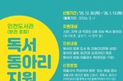 (포탈뉴스통신) 인천광역시 인천도서관 및 분관(청라호수, 청라국제, 영종하늘, 마전 도서관)은 시민들의 평생학습 역량 강화와 독서 공동체 활성화를 위해 ‘독서 동아리 지원사업’을 추진한다고 밝혔다. 이번 사업은 시민 또는 지역 내 직장인 등 6명 이상으로 구성된 독서 동아리를 대상으로 하며, 신청 기간은 오는 1월 13일까지다. 선정된 동아리는 온오프라인 독서토론 공간을 제공받고, 도서 대출 권수 확대(5권→7권) 혜택을 받을 수 있으며, 토론 활동을 위해‘2026년 3색3책 인천북’으로 선정된 도서들을 지원받을 수 있다. 신청을 원하는 동아리는 도서관 홈페이지에서 신청서를 내려받아 작성한 후, 방문 또는 전자우편으로 제출하면 된다. 방문접수는 인천도서관 및 각 분관에서 가능하다. 독서 동아리는 회원 70% 이상이 월 1회 이상 모임을 진행해야 하며, 활동결과 보고서는 다음 달 5일까지 제출해야 한다. 정치, 종교, 영리 등 목적 외 활동은 지원 대상에서 제외될 수 있다. 최종 선정 결과는 2026년 1월 20일에 개별 통지될 예정이며, 기타 자세한 사항은 인