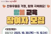 (포탈뉴스통신) 보령시 정신건강복지센터가 산후우울증 예방 및 관리를 위한 ‘맘봄 교육’ 참여자를 모집한다. 교육은 오는 11월 19일(수) 오후 2시에 보령 문화의 전당에서 진행된다. 이번 교육은 보령시에 거주하는 임신·출산 여성 및 그 가족을 대상으로 한다. 홍성의료원 정신건강의학과 전문의를 초청해 ▲산후우울증 교육의 필요성 및 인식 점검 ▲산후우울증 현황 및 실태 ▲산후우울증의 원인 및 증상 ▲예방 및 관리 방법 ▲가족의 역할 등 실생활에 도움이 되는 내용 중심으로 진행될 예정이다. 보건복지부의 '2024년 산후조리 실태조사'에 따르면, 실제로 산후우울증 진단을 받은 비율은 6.8%에 달한다. 산후 우울감 해소에 가장 큰 도움을 준 사람은 ‘배우자’(57.8%)였으나, 도움을 받지 못했다고 응답한 비율도 23.8%로 나타나 산후우울증에 대한 적극적인 관리와 지원이 필요한 것으로 나타났다. 보건소는 이번 교육을 통해 산모와 가족 간의 정서적 지지를 강화하고, 양육 스트레스 완화 및 정신건강 증진에 기여할 것으로 기대하고 있다. 전경희 보건소장은 “이번 교육이 산전·후 우울에 대한 올바른 대처법을
