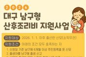 (포탈뉴스통신) 대구 남구는 저출생 대응과 출산가정의 실질적인 부담 완화를 위해 2025년부터 대구 최초로 시행 중인 ‘대구 남구형 산후조리비 지원사업’의 지원을 확대한다고 밝혔다. ‘대구 남구형 산후조리비 지원사업’은 남구 인구정책종합서비스'무지개프로젝트'의 일환으로, 산모의 건강증진 및 경제적 부담 경감을 통해 출산 친화적인 환경을 조성하여 남구 인구 위기 극복에 기여하고자 2025년부터 추진되고 있다. 남구는 2026년부터 산후조리비 지원 사각지대를 해소하고 보편적 지원을 확대하며, 산모의 산후조리 선택권을 보장하기 위해 △거주요건 완화 △지원기준 변경 △지원범위 확대 등의 내용을 반영해 사업을 확대하여 시행한다. 먼저, 거주요건을‘출산일 기준 6개월 이상 남구 거주’에서‘신청일 기준 6개월 이상 남구 거주’로 완화한다. 출산 전후 이사나 전입 등으로 지원에서 제외되던 사각지대를 해소하고, 실제로 남구에 거주하며 아이를 양육하는 가정이 보다 폭넓게 혜택을 받을 수 있도록 했다. 또한 지원기준을‘산모당 50만원’에서 ‘출생아당 50만원’으로 변경한다. 이에 따라 다태아(쌍둥이 이상) 출산가정은