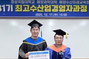 (포탈뉴스통신) 경상국립대학교 해양과학대학은 12월 17일 오후 해양과학대학 해양누리관에서 ‘2025년 제31기 최고수산업경영자과정 수료식’을 개최했다. 이날 수료식에서는 해양과학대학 이정석 학장, 최고수산업경영자과정 박주동 교학부장을 비롯해 경상남도 송상욱 수산정책국장, 한국수산업경영인경상남도연합회 곽영효 회장 등 주요 내빈이 참석해 수료생들을 축하·격려했다. 이날 행사에서는 32명이 수료했다. 이정석 학장은 “해양수산 분야에 특화된 최고수산업경영자과정 교육을 통해 수료생들이 고수온, 적조, 수산물 소비 위축 등의 어려움을 극복하고, 우리나라 어선업, 양식업, 수산가공 및 유통 산업에서 도전정신을 가지고 기회를 펼쳐보기를 기대한다.”라고 말했다. 이날 수료식 시상식에는 △총장 표창: 이준모, 강철훈, 송유명 △해양수산부장관상: 최정선 △경상남도지사상: 최원석, 박정열, 백나영, 박우석 △해양경찰청장 표창: 이경미 △통영해양경찰서장 표창: 홍종철 △경상국립대학교 총동문회장상: 한재영, 박상욱 △한국수산업경영인 중앙연합회장 표창: 최진, 나해찬, 류승훈 △해양과학대학장 표창: 김석재, 차동수, 김근호