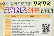 (포탈뉴스통신) 전남 곡성군은 오는 4월 25일부터 26일까지 이틀간 ‘꾸덕꾸덕 크림치즈 화분 만들기’ 프로그램을 운영한다고 밝혔다. 이번 프로그램은 섬진강기차마을 내 ‘장미의 뜰’에서 진행되며, 누구나 참여할 수 있는 체험형 관광 프로그램이다. 봄을 맞아 나만의 화분을 만들고 장미를 직접 식재해, 장미의 향기와 감성을 오롯이 담아갈 수 있도록 마련됐다. 운영시간은 오후 1시부터이며, 하루 20명씩 총 40명을 모집한다. 참가자들은 석고와 물감을 활용해 질감 있는 화분을 자신만의 스타일로 디자인하고, 집으로 돌아가 장미를 심어 가꿀 수 있도록 장미와 흙을 별도로 제공받는다. 아울러 체험 기간에는 곡성에서만 특별히 만날 수 있는 다마스크 장미 개화 시기와 맞물려, 참여자들이 다마스크 장미를 함께 감상할 수 있도록 전시할 계획이다. 참가 신청은 4월 19일까지 네이버폼을 통한 사전 접수로 진행된다. 참가비는 1인 1만 5천 원이며, 체험 소요 시간은 2시간 내외다. 군 관계자는 “이번 프로그램은 화분 만들기와 장미 식재 체험을 통해 장미를 보는 데서 그치지 않고
