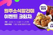 (포탈뉴스통신) 원주시는 시정 소식부터 행사·축제·복지 정보까지 시민들에게 유용한 정보를 문자 메시지로 알려주는 ‘원주소식알리미’ 서비스를 운영하고 있다. 시는 시민과의 소통을 강화하고 원주소식알리미 서비스를 활성화하기 위해 11월 14일부터 27일까지 구독 이벤트를 진행한다. 행사는 전 국민 누구나 참여할 수 있다. 원주시 홈페이지에서 원주소식알리미 서비스를 신청한 뒤, 이벤트 홈페이지(네이버폼)에 참여 정보를 입력하면 된다. 기존 구독자도 참여 가능하다. 추첨을 통해 총 100명에게 아메리카노(95명)와 치킨(5명) 쿠폰을 증정한다. 당첨자는 12월 1일 시 홈페이지를 통해 발표될 예정이다. 길경화 정보통신과장은 “앞으로 원주소식알리미가 시민들에게 더욱 빠르고 유용한 시정 정보를 제공하는 소통 플랫폼으로 자리매김할 수 있도록 최선을 다하겠다”라고 말했다. [뉴스출처 : 강원도 원주시]