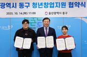 (포탈뉴스통신) 울산 동구는 10월 14일 오전 11시 동구청에서 ‘2025년 청년창업 Start Up' 선정자인 ’모아라면땅‘ 김보예 대표와 ’보컬라운지 실용음악학원‘ 이형도 대표를 대상으로 창업지원금 지원 협약식을 개최했다. ‘청년창업 지원사업’은 청년 창업자의 발굴 및 육성하고자 맞춤형 컨설팅과 교육, 창업자금 등을 지원해 청년들의 안정적인 창업 기반을 구축하기 위한 사업이다. 지난 5월 참가자를 모집해 8월에는 교육 및 컨설팅 과정을 진행했으며, 최종 보고회를 통해 2명의 청년 창업자를 선정했다. 이번 협약을 통해 1위로 선정된 김보예 대표(모아라면땅)와 2위 이형도 대표(보컬라운지 실용음악학원)는 창업지원금을 지원받게 되며, 창업 아이템을 활용한 사회공헌활동도 함께 추진할 예정이다. ‘모아라면땅’은 오븐에 구은 라면땅을 수제로 만들어 판매하는 사업을 하며, 보컬라운지 실용음악학원은 보컬 레슨과 문화예술 공연을 제작하는 사업을 한다. 김종훈 동구청장은 “많은 청년 창업자들이 동구에 정착하여 골목상권 활성화와 지역 경제 발전에 기여하기를 바란다”라며 “앞으로도 청년들의 창업 도전과 성장을 위한 다양한 정책