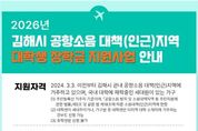 (포탈뉴스통신) 김해시는 김해공항 소음대책(인근)지역 대학생을 대상 장학금 지원사업을 확대 시행한다고 밝혔다. 이번 사업은 한국공항공사의 지원을 받아 추진하는 공항소음 피해지역 주민지원사업의 일환으로, 시는 2018년 관련 조례를 제정한 이후 전국 최초로 공항소음 피해지역 대학생에게 장학금을 지원해 오고 있으며 올해로 9년째를 맞았다. 현재 김해시 공항소음 대책(인근)지역은 부산지방항공청이 고시한 소음등고선 내 지역으로, 주촌·대동면과 불암·활천·삼안·부원·회현·동상·내외·칠산서부동 일부 지역이 해당된다. 올해 장학금 지원사업은 신청자를 대상으로 공항 인접도, 거주기간, 다자녀 여부, 대학생 자녀 수 등을 종합적으로 평가해 고득점자 순으로 대상자를 선정한다. 선정된 대학생에게는 1인당 50만원(가구당 연 1명 제한)을 지원한다. 지난해에는 664명이 신청해 300명이 선정됐으며 총 1억 5,000만 원이 지급됐다. 시는 공항소음 피해지역 주민들의 높은 관심 반영과 체감도를 제고하기 위해 올해 사업비를 2배로 확대해 총 600명의 대학생이 지원받을 수 있도록 규모를 대폭 늘렸다. &nb