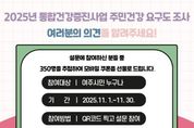 (포탈뉴스통신) 여주시 보건소 건강증진과에서는 ‘2026년 건강증진사업 계획’ 수립하고자 시민들을 대상으로 보건의료 서비스에 관한 요구도 조사를 11월 30일까지 진행한다. 이번 조사는 지역특성을 반영한 건강 형평성과 시민의 건강수준 향상을 위한 내년도 건강증진사업 계획 수립 시, 사업 우선순위와 핵심 성과 지표 선정에 시민의 의견을 반영하기 위해 마련했다 설문내용은 건강증진사업 요구도 총 10개 항목이며 SNS 등을 이용한 온라인과 대면 설문조사를 통해 진행되며 소정의 선물을 제공한다. 보건소는 이번 조사 결과를 바탕으로 지역사회 주민요구에 대한 현황분석을 통해 우선순위가 높은 건강문제를 선정하고 목표를 설정해 시민 건강지표 개선에 행정력을 집중할 계획이다. 보건소 관계자는 “주민들이 필요로 하는 사업을 파악하기 위한 통합건강증진사업 요구도 조사에 적극 참여 부탁드린다”며 “시민의 건강한 생활을 위해 주민의 수요에 맞춘 통합건강증진사업을 내실 있게 추진하겠다”고 말했다. [뉴스출처 : 경기도 여주시]