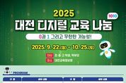 (포탈뉴스통신) 대전교육정보원은 ‘0과 1 그리고 무한한 가능성’을 주제로 ‘2025년 대전 디지털 교육 나눔1010’ 행사를 9월 22일부터 10월 28일까지 5주간 초·중·고 학생, 교원, 학부모를 대상으로 다채로운 온·오프라인 프로그램을 기획하여 성황리에 운영했다고 밝혔다. 주요 프로그램은 9월 22일부터 9월 30일까지 교사를 대상으로 ‘AI 바이브 코딩’, ‘AI·SW 및 에듀테크 활용’ 연수를 진행했고, 이후 ‘창작과 공유를 주제로 티처랩을 운영하여 교사들이 자유롭게 수업 및 학생 지도 업무에 필요한 앱과 자료를 제작하여 동료 교사들에게 온라인으로 공유했다. 10월 21일부터 10월 23일에는 대안교육 위탁학생과 특수학생을 대상으로 디지털 교육격차 완화를 위한 프로그램을 운영했고, 10월 25일에는 ‘학생과 학부모가 함께하는 AI·SW 체험교실’, ‘교사가 운영하는 AI·SW 자유 체험 부스’, ‘현직 교사가 들려주는 AI시대의 정보교육’, ‘GPT 활용 및 바이브 코딩 학부모 연수’등 학생과 학부모를 대상으로 다양한 체험 위주의 AI·SW 체험 프로그램과 학부모들의 궁금증을 해소하기 위한 특강과 실습 연수를 운