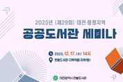 (포탈뉴스통신) 한밭도서관은 17일 오후 2시, 한밭도서관 다목적홀에서 대전충청지역 공공도서관 사서 및 직원을 대상으로 ‘2025 대전・충청지역 공공도서관 세미나’를 개최한다. 대전・충청지역 공공세미나는 급변하는 정보기술 환경과 사회・문화적 요구 속에서 공공도서관의 미래 방향을 모색하고, 사서의 전문성과 실무 역량을 강화하기 위해 1997년부터 시작되어 올해 29회를 맞이했다. 이번 세미나는 2개 강연과 1개 사례발표로 진행된다. 이용훈 (재)책읽는사회문화재단 회장은 ‘인공지능시대, 도서관의 새로운 미래를 상상하다’를 주제로 AI 기술의 확산에 따른 도서관 환경의 변화와 사서의 역할을 조망한다. 서경숙 사례 관리 슈퍼바이저는 ‘스스로 나를 성장 시키는 힘’을 통해 직무 스트레스와 감정 소진에 대응하는 자기 이해 및 심리 회복 전략을 공유한다. 이어 한밭도서관 박윤서 사서가‘대전형 도서관 특화 노인 디지털 리터러시 실행 프로그램 모델 개발’사례 발표를 통해 고령층 디지털 교육 사업의 연구성과와 실행모델을 소개한다. 한밭도서관 관계자는“이번 세미나가 대전·충청지역의 지식과 경험