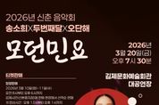 (포탈뉴스통신) 전통국악, 민요, 판소리의 정서와 현대 음악의 감각을 융합한 '송소희X두번째달X오단해 모던민요'가 오는 20일 오후 7시 30분 김제문화예술회관 대공연장에서 펼쳐진다. 이번 공연은 K-POP 중심의 대중음악이 전 세계적으로 확산된 한국 고유의 정체성을 지닌 민요, 판소리 전통예술의 새로운 존재 방식을 제시하고 전통의 맥을 잇는 국악인 송소희, 오단해와 국내 최초로 에스닉 퓨전 음악을 선보인 밴드 두번째달이 의기투합해 전통과 현대, 민속과 세계음악의 경계를 허물고 새로운 예술적 언어를 만들어 내는 공연이다. 특히, 현대적 사운드로 재해석 하는 형식으로 구성, 민요, 판소리의 서정적 선율은 유지하면서 바이올린, 만돌린, 아이리쉬 휘슬, 아코디언, 일리언 파이프 등 다양한 악기와 사운드를 활용해 모든 세대가 공감 할 수 있는 감각적 표현을 구현한, ‘태평가’,‘군밤타령’,‘사랑가’,‘진도아리랑’ 등 다양한 곡을 우리 음악의 멋과 흥을 느낄 수 있는 자리를 마련했다. 박진희 문화관광과장은 “붉은 말의 해인 병오년을 맞아 모든 걱정 등을 떨치고 즐거움 가득한 음악회를 마련하여, 시민 여러분의 보다 나은