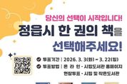 (포탈뉴스통신) 정읍시가 시민이 함께 읽고 공감하는 독서문화 확산을 위해 2026년 ‘한 권의 책’ 선정을 위한 시민 투표를 오는 22일까지 온·오프라인으로 실시한다. 투표는 정읍시립도서관 누리집을 비롯해 시립도서관 3개소, 작은도서관 13개소, 지역 서점 4곳에서 진행되며 정읍시민이라면 누구나 참여할 수 있다. 참여자는 일반, 청소년, 아동 등 3개 부문별로 각 1권씩 투표하게 된다. 올해 부문별 후보 도서는 총 10권이다. 일반 도서 부문은 인공지능 시대 인간의 역할을 묻는 구본권의 ‘로봇시대, 인간의 일’, ‘완주’를 배경으로 자아를 찾는 김금희의 ‘첫 여름, 완주’, 생명에 대한 위로를 담은 황석영의 ‘할매’, 서로를 향한 호의를 다룬 문형배의 ‘호의에 대하여’ 등 4권이 올랐다. 청소년 도서 부문은 이꽃님의 ‘내가 없던 어느 밤에’, 이금이의 ‘너를 위한 B컷’, 이라야의 ‘파이트’ 등 청소년의 성장과 관계 회복을 다룬 소설 3권이 경쟁한다. 아동 도서 부문은 아이들의 갈등하는 마음을 유쾌하게 그린 임연옥의 ‘다 숨겨버릴거야’, 별을 인터뷰한 임윤의 ‘별터뷰’, 시계로 변한 엄