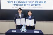 (포탈뉴스통신) 2027 충청 유니버시아드대회 조직위원회는 10일 서울 상암동 한국저작권보호원에서 대회 콘텐츠 저작권 보호를 위한 업무협약을 체결했다고 밝혔다. 이번 협약은 2027 충청 유니버시아드대회의 핵심 자산인 엠블럼, 마스코트 등 공식 상징물의 무단 도용을 차단하고, 국제 대회 수준의 브랜드 가치를 확고히 지키기 위해 마련됐다. 협약식에는 이창섭 조직위 부위원장과 보호원 박정렬 원장 등 양측 주요 인사 14명이 참석했다. 양 기관은 ▲대회 성공 개최 및 저작권 보호 인식 제고를 위한 공동 홍보 ▲상징물 보호 컨설팅 및 교육 지원 ▲온오프라인 저작권 침해 대응 지원 ▲기타 상호 협력이 필요한 사항 등을 공동으로 추진할 계획이다. 특히, 조직위와 보호원은 긴밀한 협력을 통해 대회 운영 중 발생 가능한 저작권 분쟁을 사전 차단하고, 글로벌 기준의 관리 체계를 구축해 대회 전반의 저작권 보호 수준을 한 단계 끌어올린다는 방침이다. 이창섭 조직위 부위원장은 “전 세계가 주목하는 국제대회인 만큼 저작권 보호를 글로벌 기준에 맞춰 철저히 관리하겠다”며 “이번 협약을 통해 대회 브랜드 가