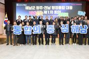 (포탈뉴스통신) 해남군은 26일 군청 상황실에서 광주·전남 행정통합에 선제적으로 대응하기 위한 ‘민·관 대응 태스크포스(TF)’ 제1차 회의를 열고 본격적인 활동에 들어갔다. 부군수를 단장으로 한 이번 TF는 해남군의회 의원과 교수 등 전문가, 언론인, 사회단체장 등 총 45명으로 구성됐으며, 행정통합 추진 과정에서 해남군의 의견을 결집하고 지역 발전을 위한 핵심 과제를 특별법에 반영하는 역할을 맡는다. 이날 회의에서는 최근 급물살을 타고 있는 광주·전남 행정통합 추진 현황을 공유하고, 해남군이 발굴한 33건의 분야별 대응 과제를 중심으로 집중 논의가 이뤄졌다. 주요 과제로는 RE100 산업단지 조성 및 분산에너지 전력망 구축과 영농형 태양광 육성, 반도체 특화단지 조성, 지역주도형 스마트농업과 푸드테크 산업 육성, 서남부권 물류기지 구축과 광역 교통망 확충 등이 포함됐다. 특히 정부가 통합 지자체에 대해 4년간 최대 20조 원 규모의 재정 지원과 300여 개의 행정 특례 부여를 예고한 가운데, 이를 해남 도약의 기회로 만들기 위한 전략적 접근 방안도 논의됐다. 회의에 참석한 민·관 위