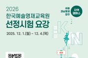 (포탈뉴스통신) 경상남도는 한국예술종합학교(한예종) 부설 한국예술영재교육원 경남통영캠퍼스에서 2026년도 예술영재 교육생을 모집한다고 밝혔다. 모집기간은 12월 1일부터 4일까지이며, 경남통영캠퍼스는 음악·무용·전통예술·융합 총 4개의 분야에서 총 75명의 교육생을 선발할 예정이다. 올해부터 모든 전형의 선발 지원자격이 확대되어, 대한민국 국적을 보유한 자 중 지원분야(세부전공)의 선발대상 생년월일 요건을 충족하면 누구나 지원할 수 있다. 경남통영캠퍼스는 경남·경북·대구·부산·울산의 경상권 지역에 주민등록이 되어 있어야 지원이 가능하며, 교육기간은 2026년 3월부터 11월까지이다. 수업료는 전액무료로 제공되며, 1:1 전공실기 수업을 비롯해 마스터클래스, 방학 특강 등 한국예술종합학교 교수진과 분야별 전문가가 참여하는 수준 높은 예술영재교육 프로그램이 운영될 예정이다. 조여문 경남도 문화예술과장은 “경상권의 잠재된 예술영재들이 수도권에 가지 않아도 본인의 재능을 마음껏 펼칠 수 있는 소중한 기회가 될 것이다”면서, “지역 예술 발전을 이끌 차세대 인재들이 많이 탄생하길 기대한다”라고