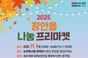 (포탈뉴스통신) 기장군 장안읍은 풍요로운 가을을 맞아 오는 11월 1일(토) 농축특산물 판매장(장안읍 장안로 316)에서 장안읍 주민자치위원회 주관으로 자연과 문화가 함께하는 2025년 ‘장안읍 나눔 프리마켓’을 개최한다고 31일 밝혔다. 이번 행사는 오전 10시부터 오후 4시까지 진행되며, 지역 농특산물, 자매도시 무주군 부남면 직거래 장터, 체험 등 다양한 부스가 마련된다. 또한 주민자치프로그램 수강생의 발표와 태권도 시범단의 공연 등 다채로운 부대행사도 함께 펼쳐질 예정이다. 특히, 남녀노소 누구나 참여할 수 있는 에코백 만들기 체험을 통해 환경 사랑의 가치를 실천하는 등 주민이 함께 즐기며 소통하는 축제의 장으로 꾸며진다. 아울러, 지역사회 상생발전을 위해 꾸준히 노력해 온 ㈜신세계사이먼 부산프리미엄아울렛이 지역의 어려운 이웃을 위해 기탁한 성품 전달식도 함께 진행돼, ‘나눔과 소통, 그리고 화합의 즐거움’이라는 프리마켓의 취지가 한층 더 빛날 것으로 기대된다. 박세열 위원장은 “장안읍 나눔 프리마켓은 주민이 주도하고 직접 참여하는 소통과 나눔의 장이다”라며, “이번 행사를 통해 나눔의 가