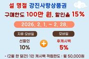 (포탈뉴스통신) 강진군이 설 명절을 맞아 2월 한 달간 강진사랑상품권 구매한도와 할인율을 상향 조정한다. 지원 기간은 오는 2월 1일부터 2월 28일까지이며, 대상은 모바일(착) 강진사랑상품권이다. 이번 상향 조정은 설 명절 기간 소비 진작과 지역경제를 활성화하기 위해 조정된 것으로 모바일 (착) 상품권의 구매한도를 기존 70만 원에서 100만 원으로 상향하고, 할인율은 기존 선할인 10%에서 후캐시백 5%를 추가 지급하는 총 15%로 상향했다. 다만, 지류 상품권은 부정유통 방지를 위해 구매한도 70만 원, 선할인 10%를 기존대로 유지한다. 이번 강진사랑상품권 특별 상향 운영은 2025년 지역사랑상품권 발행 우수 지자체로 선정되어 특별교부세로 받은 2억 원으로 추진된다. 이는 강진군이 지역사랑상품권의 안정적인 발행과 건전한 유통 관리, 국비 연계 집행을 적극 추진해 온 성과로, 지역경제 활성화 정책의 우수성을 대외적으로 인정받은 결과다. 강진군은 7년 연속 강진사랑상품권 할인율을 연중 10%로 유지하며 지역경제 활성화에 앞장서 왔으며, 2026년에도 상품권 발행과 할인