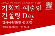 (포탈뉴스통신) (재)순천문화재단은 오는 29일까지 ‘2026 기획자-예술인 컨설팅 Day(이하 컨설팅 Day)’에 참여할 전문예술인(단체)을 공개 모집한다. ‘컨설팅 Day’는 지난 6년간 운영해 온 ‘지역예술인·기획자 매칭 지원사업’을 현장 상황에 맞춰 개편한 프로그램이다. 재단은 그간의 사업 수행 과정을 통해 기획자 참여의 필요성과 효과성이 충분히 입증됐으며, 이제는 지역 문화예술 현장에서도 자체적으로 예술인과 기획자가 협력하는 분위기가 조성됐다고 판단해 사업 방식을 변경하게 됐다. 이번 개편의 주된 배경에는 전남문화재단 지원제도의 특징도 반영됐다. 문학, 시각, 공연 등 기초지원 분야의 접수 양식이 비교적 간단해졌고, 집중지원사업의 경우 기획자의 기획비가 예산으로 인정되기 때문이다. 이에 재단은 직접적인 인건비 지원보다는 민간의 자율적인 네트워킹을 통해 협업하는 구조를 만드는 것이 장기적으로 바람직하다고 판단했다. 따라서 2026년부터는 예술인들이 작성한 사업계획서 초안을 바탕으로 전문가의 집중 컨설팅을 받아 내용을 보완하고 완성도를 높이는 실질적인 지원에 초점을 맞출 계획이다.