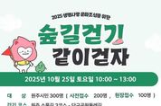 (포탈뉴스통신) 원주시정신건강복지센터 부설 자살예방센터는 오는 25일 오전 10시, 단구공원 둘레길에서 생명사랑 문화조성을 위한 숲길걷기 ‘같이 걷자’를 개최한다. 올해로 8번째를 맞는 이번 행사는 숲길을 따라 걸으며 생명사랑과 정신건강의 중요성을 되새기고, 관계기관과 함께 다양한 체험을 즐길 수 있도록 구성됐다. 강원금연지원센터, 원주시가족센터, 원주시노인종합복지관, 강원도박문제예방치유센터, 강원서부아동보호전문기관, 원주시청소년상담복지센터, 양업토마스장애인종합복지관, 원주종합복지관 등 8개 기관이 행사에 동참하기로 했다. 행사는 오전 10시부터 오후 1시까지 열리며, 단구열린광장에 집결 후 공원둘레길을 따라 걷는 코스로 운영된다. 행사장에서 진행되는 ‘당복사진관’, ‘괜찮니 우체통’, ‘생명사랑서약’ 등 다양한 활동에 참여하면 소정의 상품도 받을 수 있다. 참가비는 무료이며, 사전 참가 신청은 10월 17일까지 원주시정신건강복지센터 홈페이지에서 선착순으로 접수한다. 행사 당일 현장 신청도 가능하며, 자세한 사항은 원주시정신건강복지센터 홈페이지에서 확인할 수 있다. 센터 관계자는 “이번 행사는 시민