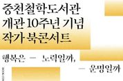 (포탈뉴스통신) 원주시 중천철학도서관은 오는 26일 오전 11시, 개관 10주년 기념 작가 북콘서트를 개최한다. 중천철학도서관 개관 10주년을 기념해 열리는 이번 행사는 베스트셀러 ‘마흔에 읽는 쇼펜하우어’의 저자인 강용수 작가를 초빙해 ‘철학이 들려주는 답-행복은 노력일까, 운명일까’를 주제로 1시간 동안 진행된다. 행사는 도서관 2층 중천학당에서 진행되며, 2층 로비에서는 개관 후 10년 간의 기록을 담은 ‘시간의 축적, 지혜의 발자취: 중천철학도서관 10년사’와 ‘중천 전집’, ‘유튜브 중천학당 영상전’ 등으로 구성된 기획 전시도 운영된다. 사전 참가 신청은 10월 17일 오전 10시부터 도서관 누리집과 전화로 접수한다. 한편 중천철학도서관은 동양 철학의 대가 고 중천(中天) 김충열 선생의 학문적 업적을 기념하고, 철학의 대중화를 위해 지난 2015년 개관한 전국 최초의 철학 특화 도서관이다. [뉴스출처 : 강원도 원주시]