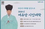 (포탈뉴스통신) 남양주시는 오는 26일부터 5월 29일까지 정약용도서관에서 다산 정약용 선생의 삶과 사상을 시민의 눈높이에서 살펴보는‘2026 여유당 시민대학’에 참여할 수강생을 모집한다고 3일 밝혔다. ‘여유당시민대학’은 정약용 선생의 삶과 학문을 다양한 주제로 풀어내 일상 속 인문 가치로 확산하기 위한 10주 과정의 인문학 프로그램이다. 올해는 기존 강연 중심 운영에서 나아가 현장 답사 과정을 추가해 체험형 교육을 강화했다. 이번 강좌는 정약용 연구 권위자인 정민 한양대학교 교수의 기조 강연으로 시작한다. 이후 △한의학 △과학 탐구 △차(茶) 생활 △서화 △정원 등 다산의 방대한 학문 세계를 다양한 시각에서 살펴볼 예정이다. 특히 4월 28일에는 ‘정조의 원행을묘 백리길’을 주제로 창덕궁부터 융릉과 건릉까지 이어지는 역사 현장을 직접 탐방하는 현장 답사가 진행된다. 5월 29일 마지막 회차에는 다산 정약용 선생의 7대 종손이 특별 강연자로 참여해 가문의 기록과 정신을 전하며 프로그램의 의미를 더할 예정이다. 강연은 정약용도서관 세미나실에서 진행된다. 모집 인원은 남양주시민 40명으로 선착순 접수