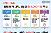 (포탈뉴스통신) 강원특별자치도는 3월 5일 오전 10시 도청에서 도내 15개 대학 및 강원RISE센터와 함께 ‘강원RISE 운영 간담회’를 개최했다. 이날 간담회에는 김진태 지사를 비롯해 강원인재원장, 도내 15개 참여 대학의 RISE사업단장, 강원RISE센터장 등이 참석해 그간의 추진 경과를 공유하고 2026년 추진방향과 사업의 안정적 운영 방안을 논의했다. RISE(지역혁신중심 대학지원체계)는 기존 교육부 중심으로 운영되던 대학 재정지원 사업을 2025년부터 지역 주도로 전환해, 지역발전 전략과 대학 지원을 연계함으로써 지역과 대학의 동반 성장을 추진하는 사업이다. 강원 RISE는 도내 15개 대학을 대상으로 5년간 총 5,000억 원이 투입되는 대규모 사업으로, 2025년 시행계획 수립과 수행대학 선정, 사전 컨설팅을 거쳐 하반기부터 본격적인 과제 수해에 들어갔다. 현재 107개 과제가 추진되고 있으며, 2025년 998억 원 2026년 1,083억 원이 지원된다. 도는 ▲강원 전략산업 육성 1,788억 원 ▲지역 정주형 인재양성 1,414억 원 ▲강원 스타트업 허브 조성 580억 원 ▲강원형 직업‧평생교육 체계 구축 526억 원 ▲대학주도형 지역현안해