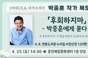 (포탈뉴스통신) 홍천군립도서관이 오는 4월 25일 오후 2시 홍천복합문화센터 1층 강당에서 배우 겸 작가 박중훈을 초청해 2026년 ‘체크인 라이브러리’의 첫 번째 북토크를 개최한다. ‘체크인 라이브러리’는 도서관에 ‘체크인(Check In)’하여 평소 관심 있던 작가를 만나(Check 人) 한 사람의 책(책 人)이 들려주는 이야기와 생각을 공유하는 홍천군의 대표적인 독서 문화 진흥 플랫폼이다. 이번 북 토크는 '후회 하지마 – 박중훈에게 묻다'라는 주제로 진행된다. 스무 살에 데뷔해 40년간 40여 편의 영화에 출연하며 ‘국민배우’로 폭넓은 사랑을 받아온 박중훈은 이번 북 토크에서 배우로서의 삶과 영화 이야기, 그리고 2025년 작가로 변신하며 출간한 에세이 '후회 하지마'에 담긴 진솔한 메시지를 전할 예정이다. 박중훈 작가가 직접 참여자들의 질문에 답하며 소통하는 시간도 마련되어 있어 더욱 눈길을 끈다. ‘박중훈 작가 북 토크’ 사전 참여 신청은 4월 8일 오전 10시부터 연봉도서관 누리집(홈페이지)에서 할 수 있으며 선착순 120명까지 접수할 수 있다. 이성희 교육체육과장은 “지난