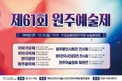 (포탈뉴스통신) (사)원주예총은 오는 10월 16일부터 11월 2일까지 원주시 댄싱공연장 주차장 상설공연장과 치악예술관 전시실 등 원주 전역에서 시민과 함께하는 ‘제61회 원주예술제’를 개최한다. 올해로 61회를 맞이한 원주예술제는 지역 예술인들의 창작열과 예술혼이 어우러진 종합 예술축제로, 예술로 하나 되는 시민 화합의 장이자 원주의 대표 문화예술 축제로 자리매김하고 있다. 축제 기간 동안 원주예총 산하 7개 협회가 참여하여 사진, 미술, 문인, 연극, 국악, 음악 등 다채로운 전시와 공연을 선보이며, 원주의 가을을 풍성한 예술의 향기로 물들일 예정이다. 특히 개막식에서는 국악협회 공연을 시작으로 시낭송, 바이올린 연주, 대금과 발레, 전통·현대무용, 금관5중주, 퓨전국악팀 ‘작심’의 무대까지 다채로운 프로그램이 이어진다. 마지막 순서로는 출연자와 관객이 함께 노래를 부르며 예술로 하나 되는 특별한 순간을 선사할 예정이다. 박혜순 문화예술과장은 “61년의 역사와 전통을 이어온 원주예술제는 예술인과 시민이 함께 만들어가는 축제이자, 원주의 문화적 저력을 보여주는 상징적인 행사”라며, “많은 시민들의