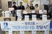 (포탈뉴스통신) 수원시 권선구 입북동 행정복지센터는 지난 6일, 당수동 소재 꼬망새어린이집으로부터 관내 취약계층을 위한 '사랑의 라면' 꾸러미를 기탁받았다고 밝혔다. 이번 기부는 꼬망새어린이집 원아들이 각 가정에서 십시일반으로 모은 라면으로 마련되어 그 의미를 더했다. 아이들이 고사리손으로 직접 모은 이 꾸러미는 입북동 내 기초생활수급자 및 차상위계층 등 도움이 필요한 이웃들에게 전달되어 따뜻한 한 끼가 될 예정이다. 유지원 꼬망새어린이집 원장은 "이번 기부 활동이 아이들에게 나눔과 배려라는 소중한 가치를 자연스럽게 배울 수 있는 교육의 장이 됐기를 바란다"며, "아이들의 따뜻한 마음이 지역사회의 밝은 미래를 위한 밑거름이 됐으면 한다"라고 소감을 전했다. 이에 이경영 입북동장은 "아이들의 순수한 마음에서 시작된 나눔이 지역사회 전반에 '선한 영향력'으로 확산되길 기대한다"며 "기탁해 주신 물품은 아이들과 이웃 모두에게 희망의 메시지가 될 수 있도록 소중히 전달하겠다"라고 화답했다. [뉴스출처 : 경기도 수원시]