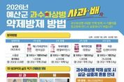 (포탈뉴스통신) 예산군농업기술센터는 식물방역법상 법정 금지병인 과수화상병 확산을 막기 위해 관내 사과·배 재배 농가를 대상으로 11일부터 18일까지 1∼4차 사전방제 약제를 무상 공급한다. 이번에 공급되는 사전방제 약제는 총 4종으로 △개화 전 1차 방제 ‘에스지세균박사’ △개화기 2차 방제 ‘옥싸이클린’ △3차 방제 ‘배차엔진품’ △4차 방제 ‘비온’이다. 효과적인 방제를 위해 1차 방제약제는 사과의 경우 신초 발아 전에, 배는 꽃눈 발아 직후에 살포해야 하며, 개화기 2·3·4차 방제는 기상 관측 정보를 바탕으로 읍·면별 꽃 감염 위험도를 예측해 위험도가 높게 나타나는 시기에 약제를 살포하는 것이 중요하다. 농업기술센터는 방제 효과를 높이기 위해 적절한 방제 시기를 농가에 문자로 안내할 계획이다. 아울러 과수화상병 확산을 막기 위해 방제 적기에 약제를 반드시 살포해야 하며, 발병 시 손실보상 관련 증빙을 위해 농가는 약제 방제 확인서와 살포한 약제 봉지를 1년간 보관해야 한다. 또한 농업기술센터는 ‘2026년 사과 방제력 및 화상병 약제 살포 시기 안내’ 홍보물을 함께 배부해 농가의