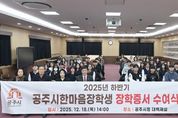 (포탈뉴스통신) (재)공주시한마음장학회(이사장 최원철)는 지난 18일 시청 대백제실에서 2025년 하반기 장학생을 대상으로 장학증서 수여식을 열었다고 밝혔다. 이번에 성적우수장학금과 공주사랑장학금 분야에서 선발된 장학생은 모두 85명이며, 이 가운데 46명이 수여식에 참석해 장학증서를 받았다. 수여식에는 장학회 임원과 학부모 등이 함께 참석해 장학생들의 성취를 축하했다. 성적우수장학금은 고등학생 25명(1인당 80만 원)과 대학생 40명(1인당 150만 원) 등 모두 65명을 선발했다. 고등학생은 직전 학기 과목별 석차가 3등급 이내인 과목의 비율이 70% 이상인 학생을 대상으로 했으며, 대학생은 12학점 이상을 이수하고 평균 평점 4.0 이상(4.5 만점 기준)인 학생을 선발했다. 선발 대상은 공주 지역의 초중고에 재학 중이거나 졸업한 학생으로, 공고일을 기준으로 장학생 본인 또는 보호자가 공주시 안에 1년 이상 계속해 주민등록을 두고 있어야 한다. 공주사랑장학금은 다른 지역에서 1년 이상 주민등록을 두고 있다가 공주시로 전입한 지 6개월 이상 지난 국립공주대학교와 공주교육대학교 재학